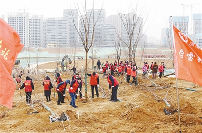2月22日,我市開展春季義務(wù)植樹活動。圖為沙澧河二期綜合整治項目基地植樹現(xiàn)場。