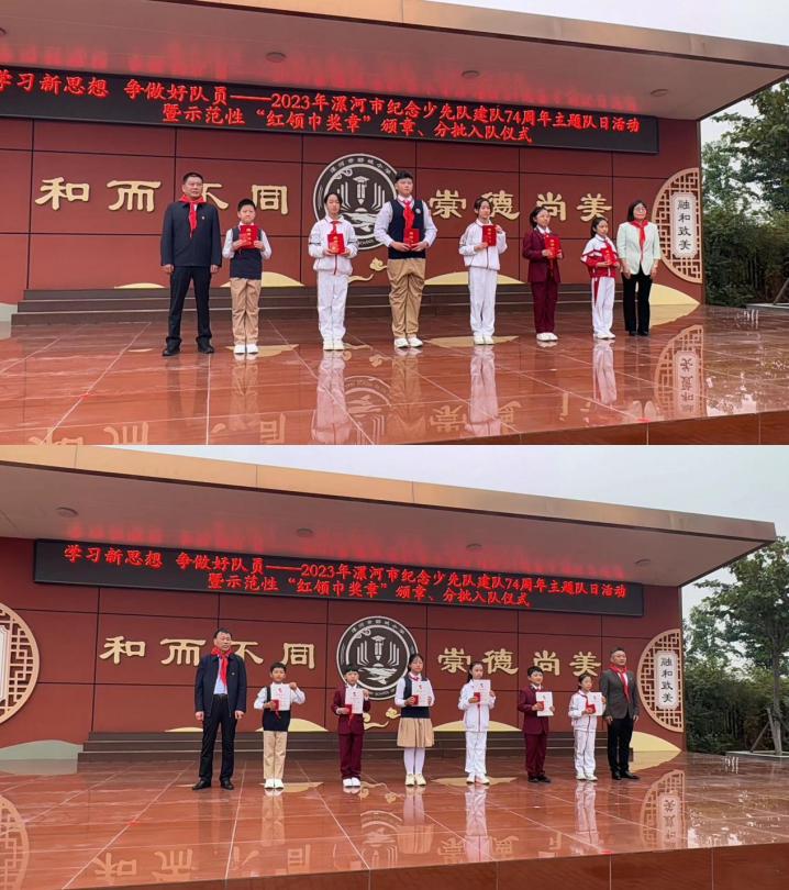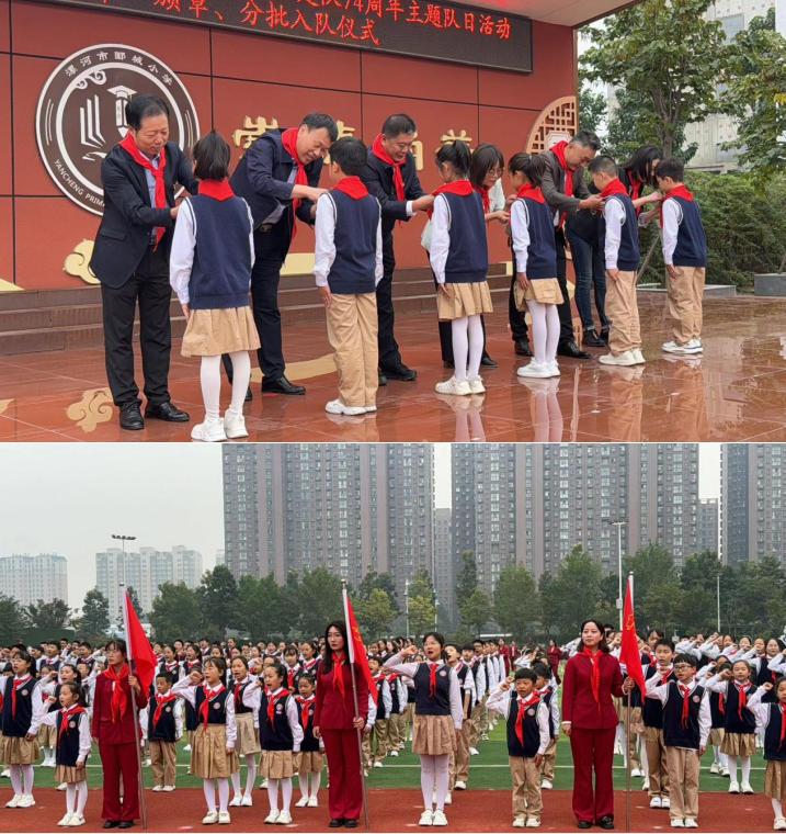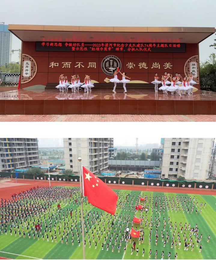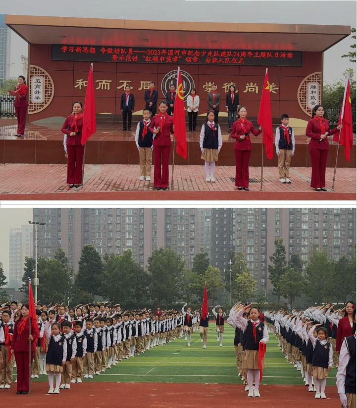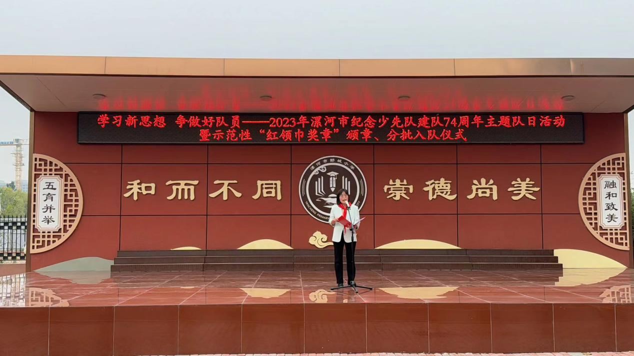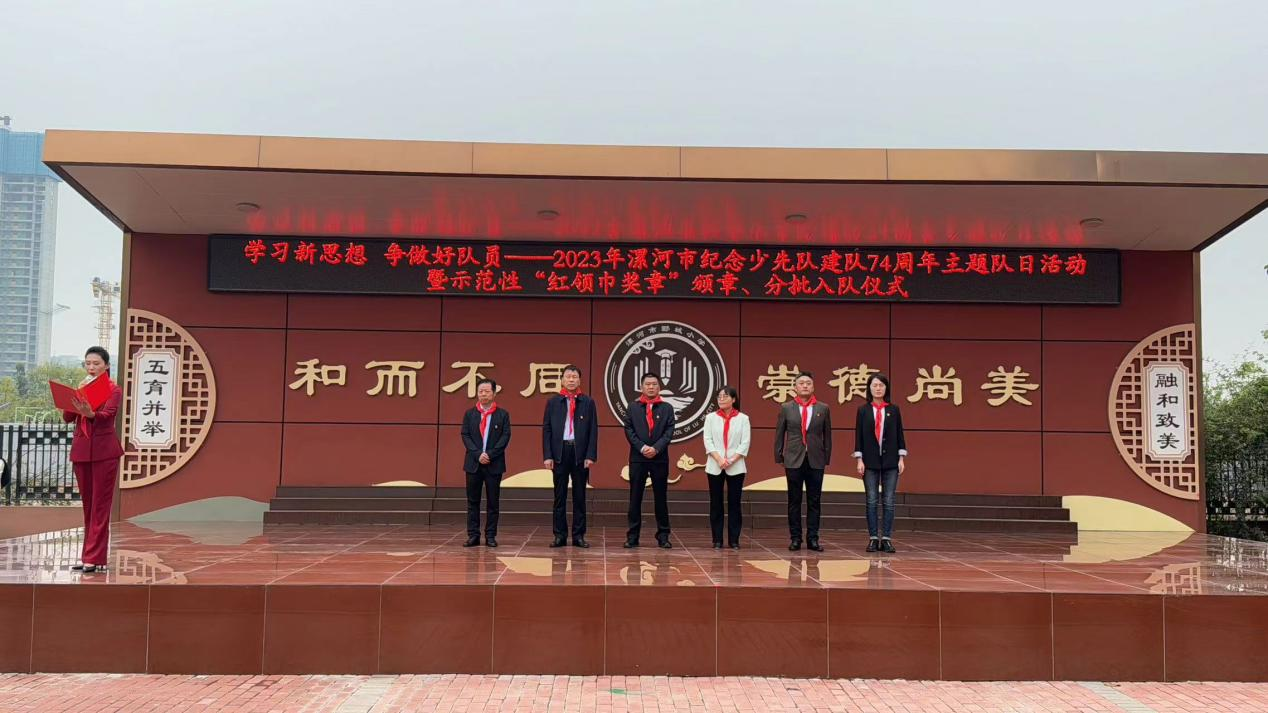 為加強(qiáng)對(duì)少年兒童的思想引領(lǐng),激發(fā)少先隊(duì)員的光榮感和組織歸屬感,示范推動(dòng)全市少先隊(duì)分批入隊(duì)和紅領(lǐng)巾爭(zhēng)章工作,10月12日上午,在第74個(gè)中國(guó)少年先鋒隊(duì)建隊(duì)日來臨之際,由共青團(tuán)漯河市委、漯河市教育局、漯河市少工委主辦,郾城小學(xué)承辦的“學(xué)習(xí)新思想 爭(zhēng)做好隊(duì)員”——2023年漯河市紀(jì)念少先隊(duì)建隊(duì)74周年主題隊(duì)日活動(dòng)暨示范性“紅領(lǐng)巾獎(jiǎng)?wù)?rdquo;頒章、分批入隊(duì)儀式在郾城小學(xué)圓滿舉行。