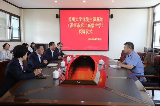 4月17日上午,鄭州大學(xué)許立敏教授蒞臨漯河市第二高級(jí)中學(xué),在我校510會(huì)議室舉行了“鄭州大學(xué)優(yōu)質(zhì)生源基地”授牌儀式。漯河市第二高級(jí)中學(xué)校領(lǐng)導(dǎo)班子、中層干部出席了本次儀式。