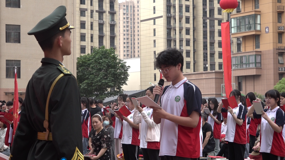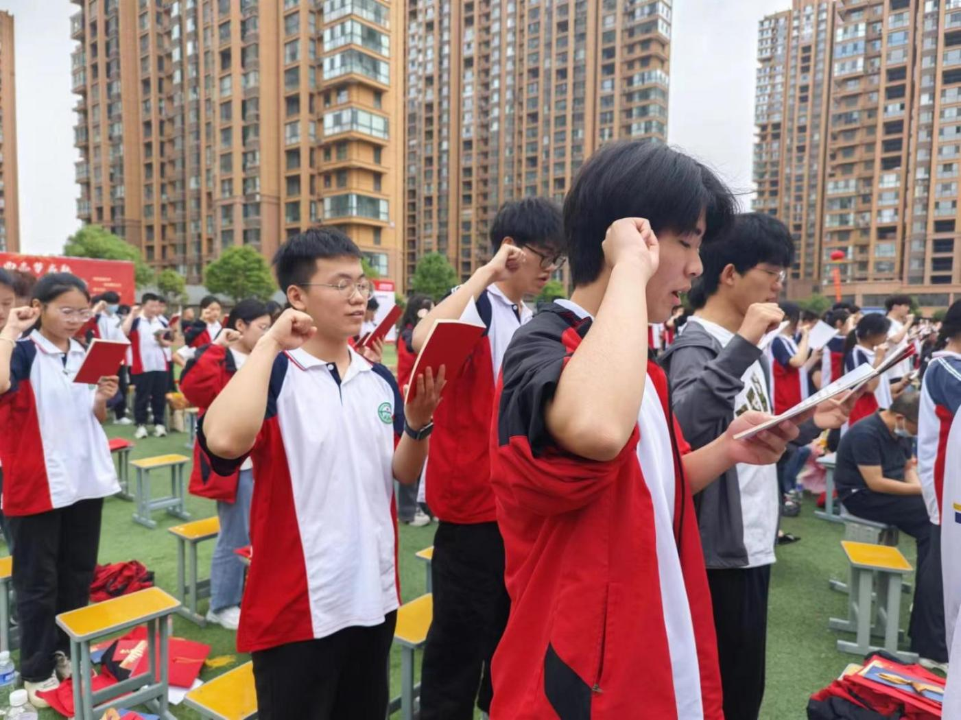 學(xué)生代表上前發(fā)言,他的講話發(fā)自肺腑、擲地有聲,道出了全體同學(xué)的決心和自信。十載寒窗,百日苦練,何人健步登金榜;一腔熱血,萬(wàn)丈豪情,我輩英才奪桂冠!