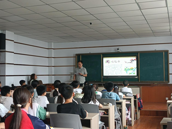 課堂上,高明同志用視頻導(dǎo)入,結(jié)合世界局勢引出思政課主題,珍惜和平,傳承中華美德,提高同學們對傳統(tǒng)文化的濃厚興趣,學習時代楷模,發(fā)揚榜樣力量,帶同學們深入感受中華傳統(tǒng)美德,立志做美德少年。課堂最后,高鎮(zhèn)長對同學們進行安全教育,叮囑大家暑期安全注意事項。