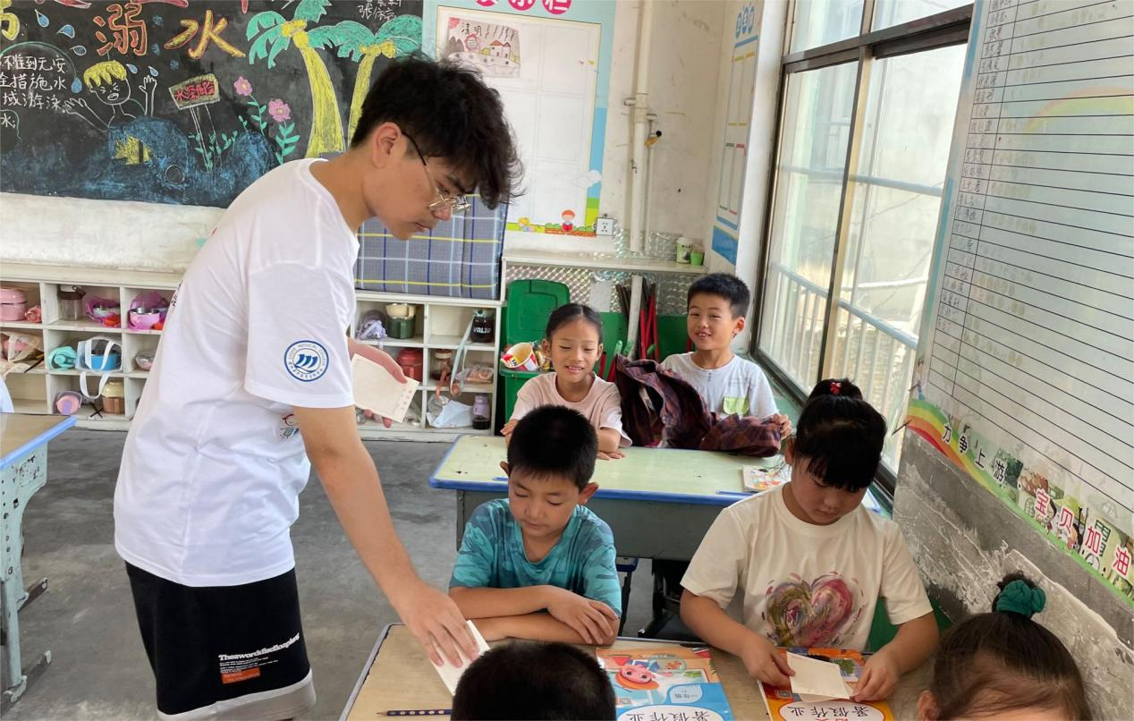 來自南昌大學瑪麗女王學院的20級學生譚秉曜參加暑期“返家鄉(xiāng)”活動,加入學校“彩虹支教隊”,利用自己的專業(yè)知識為學生科普了科學洗手,科學刷牙方面的知識”。