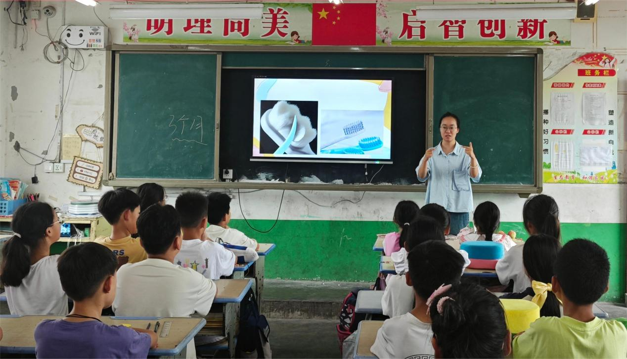 “彩虹支教隊”在春芽小學開展支教活動期間,在配合任課老師上好文化課之余,開展系列“醫(yī)路有我,守護健康”衛(wèi)生健康知識宣講活動,以生動有趣的形式傳遞個人衛(wèi)生防護知識,幫助少年兒童筑牢健康生活理念。