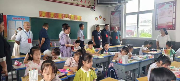 隨后,李俊娜校長陪同各位領導和代表逐個教室進行參觀,了解孩子們的上課情況,并詢問孩子們參加暑期托管有什么收獲,對學校餐廳的飲食是否滿意等。孩子們的一張張笑臉和肯定的回答也充分表明了對學校工作的認可。