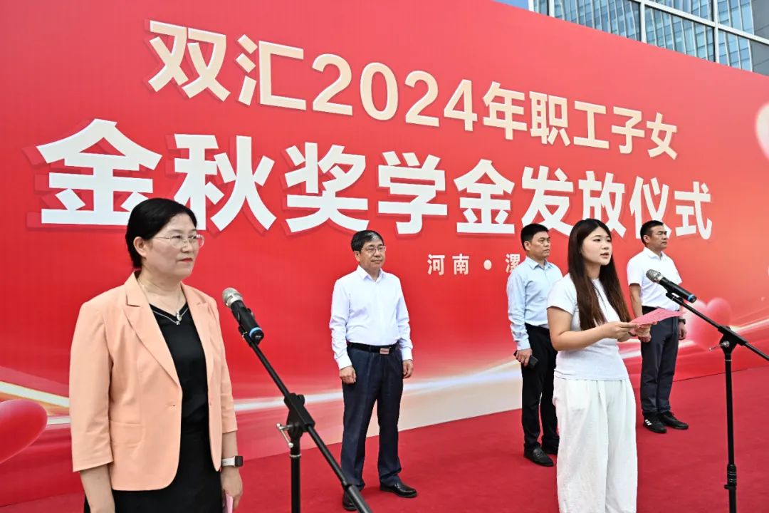 8月22日,雙匯2024年職工子女金秋獎(jiǎng)學(xué)金發(fā)放儀式在雙匯總部大樓順利舉行。雙匯發(fā)展總裁馬相杰,黨委書(shū)記、工會(huì)主席杜俊甫,副總裁周霄,工會(huì)副主席王曉玲及獲得獎(jiǎng)勵(lì)的第一批職工子女等400余人參加儀式。