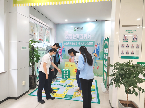 中國(guó)人壽壽險(xiǎn)漯河分公司黃河路營(yíng)業(yè)廳內(nèi)設(shè)置了全國(guó)統(tǒng)一的“金融知識(shí)便利店”,分為活動(dòng)主海報(bào)、禮品區(qū)、金融機(jī)場(chǎng)互動(dòng)版塊、“八大權(quán)益”連連看互動(dòng)板塊,將金融知識(shí)融入妙趣橫生的互動(dòng)游戲之中。金融機(jī)場(chǎng)飛行棋游戲互動(dòng)版塊分為保險(xiǎn)專機(jī)、反詐專機(jī)、反洗錢專機(jī)、反非專機(jī),客戶朋友們輪流擲骰子前進(jìn)或后退,根據(jù)點(diǎn)數(shù)對(duì)應(yīng)位置進(jìn)行做俯臥撐、背古詩(shī)、蹲起、模仿動(dòng)物叫的游戲和學(xué)習(xí)金融保險(xiǎn)知識(shí)等。“八大權(quán)益”連連看活動(dòng)讓客戶朋友們?nèi)娴亓私庀M(fèi)者八大權(quán)益等知識(shí),大家在歡聲笑語(yǔ)中輕松掌握金融防騙、反洗錢、防范非法集資、金融保險(xiǎn)知識(shí)等。公司對(duì)參與互動(dòng)游戲的客戶朋友們送上了中國(guó)人壽專屬的小禮品,讓客戶在參與中收獲知識(shí)與喜悅。同時(shí),寓教于樂(lè)的游戲項(xiàng)目有效提升了金融知識(shí)普及的覆蓋面與接受度,彰顯了中國(guó)人壽服務(wù)社會(huì)的責(zé)任擔(dān)當(dāng)。