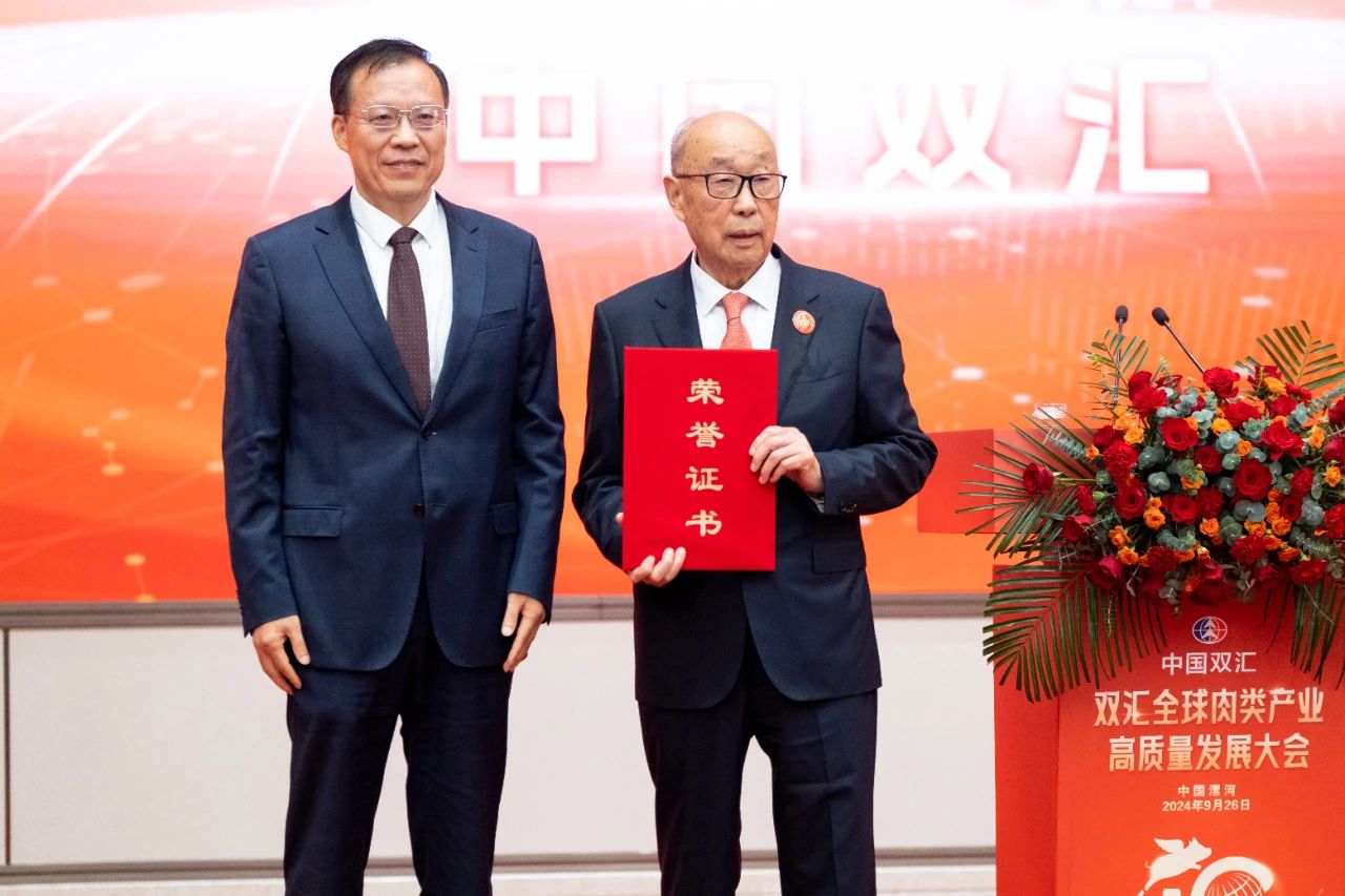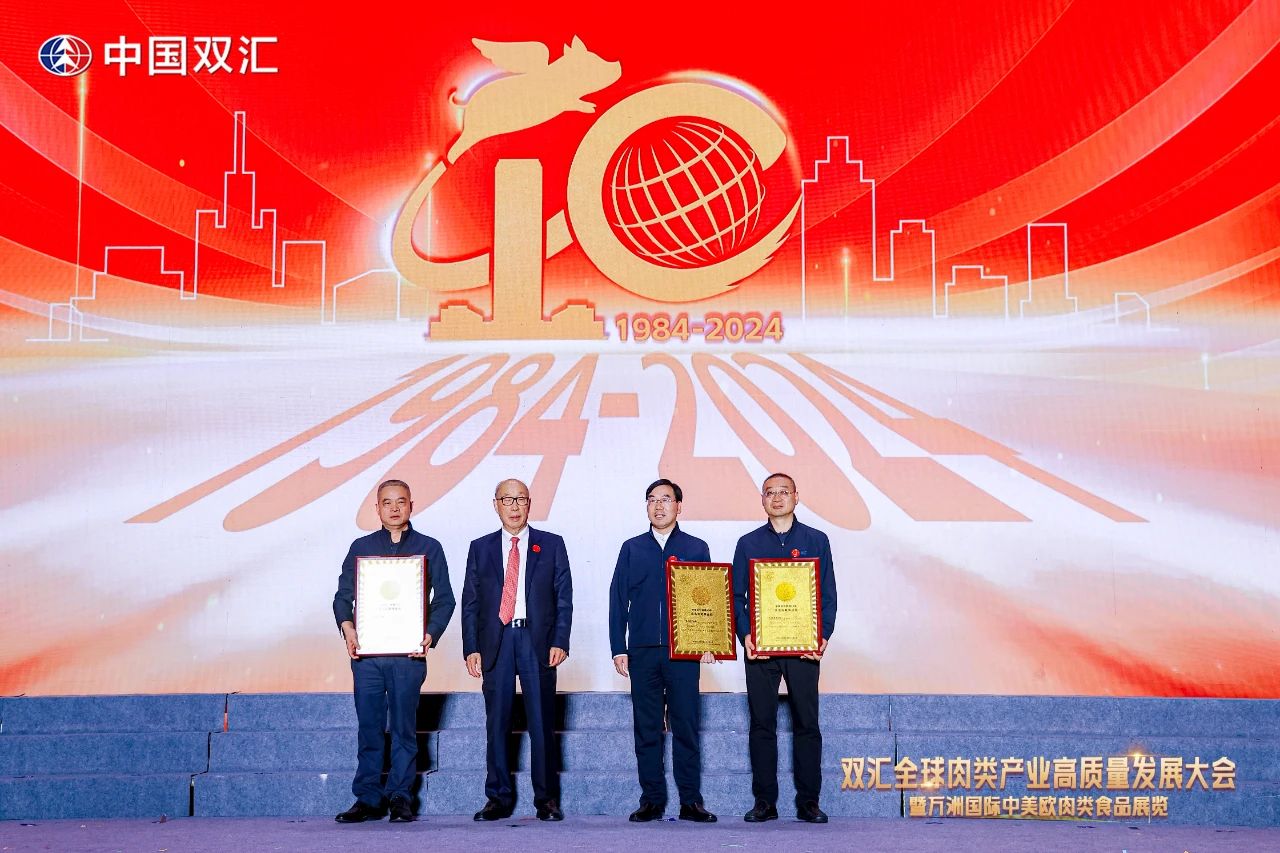 萬隆為獲得“中國雙匯輝煌40年突出貢獻事業(yè)部”的單位頒獎