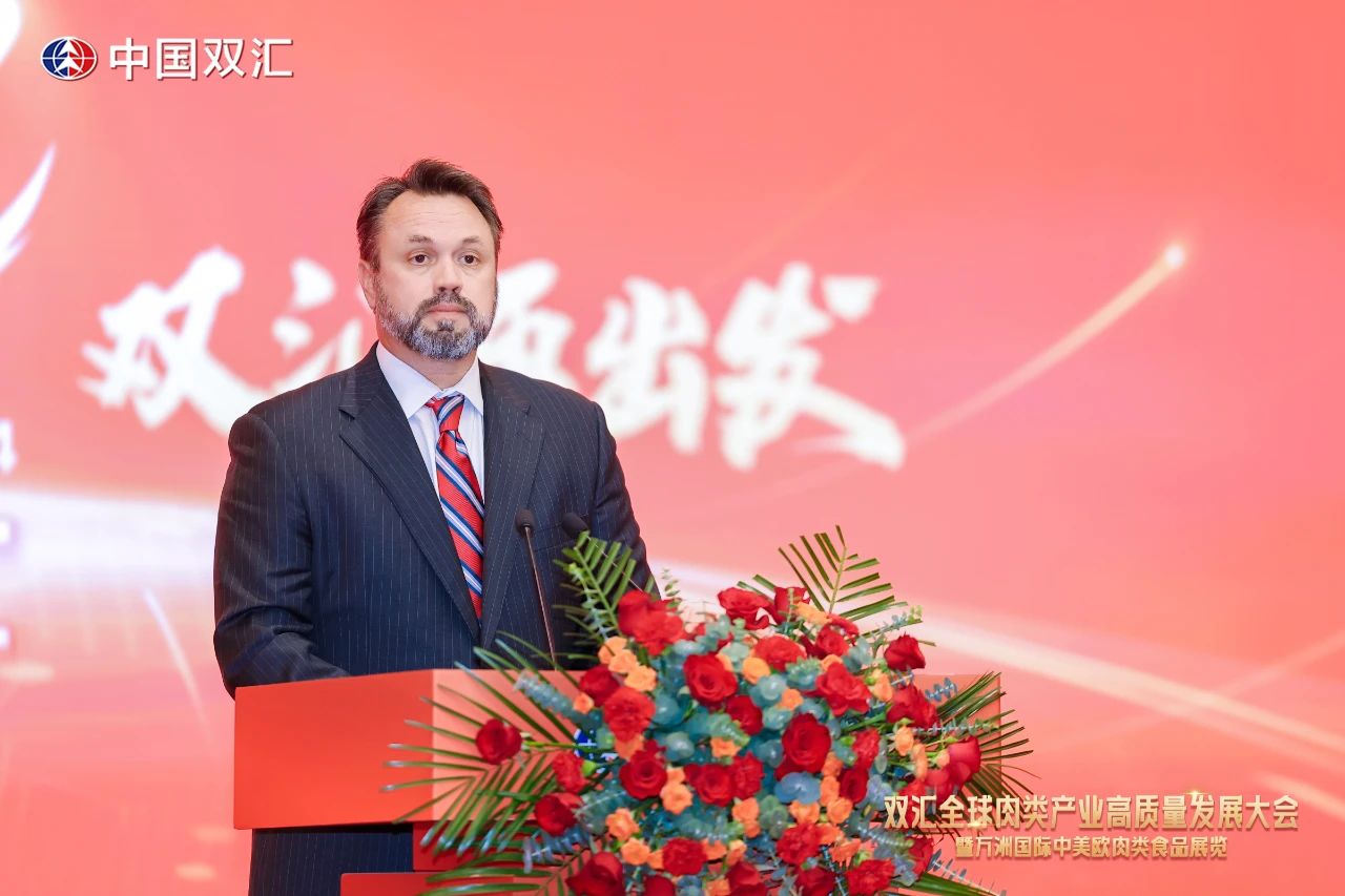 隨后,雙匯全球肉類產(chǎn)業(yè)高質(zhì)量發(fā)展大會在雙匯總部大樓報告廳舉行,雙匯發(fā)展總裁馬相杰主持會議。