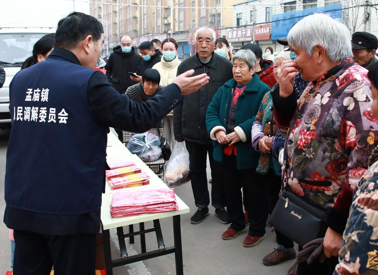 “遇到矛盾糾紛,碰上不懂的法律問題,都可以到孟廟鎮(zhèn)‘兩所一庭’進(jìn)行咨詢...”近日,鎮(zhèn)普法調(diào)解員以設(shè)立咨詢臺(tái)、發(fā)放宣傳資料、講解案件等多種形式,向過(guò)往群眾詳細(xì)普及婚戀家庭、繼承與遺囑、防范電信網(wǎng)絡(luò)詐騙等與群眾生活息息相關(guān)的法律法規(guī),并現(xiàn)場(chǎng)就群眾的法律問題進(jìn)行答疑解惑,引導(dǎo)群眾積極運(yùn)用法律途徑維護(hù)合法權(quán)益。同時(shí)告知群眾,在遇到法律糾紛時(shí)可以向村(社區(qū))調(diào)解委員會(huì)或鎮(zhèn)“兩所一庭”申請(qǐng)調(diào)解,人民調(diào)解員會(huì)秉持公平公正的原則,尊重雙方當(dāng)事人的意見,依據(jù)法律法規(guī)和公序良俗來(lái)化解矛盾,讓人民群眾在家門口就能享受到專業(yè)的法律服務(wù),此次活動(dòng),共發(fā)放宣傳資料300余份,解答群眾法律咨詢50余人次。