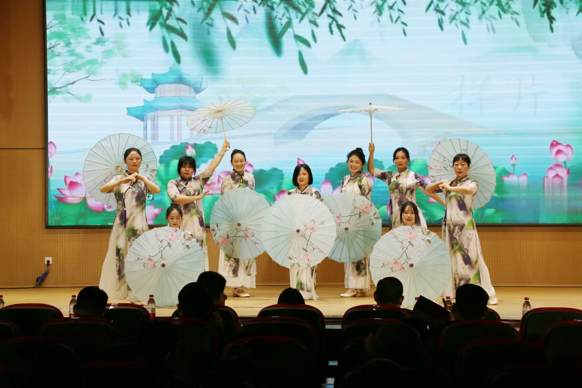 伴隨著歡快的音樂,本次聯(lián)歡會(huì)在開場(chǎng)舞《新年快樂》中拉開帷幕。節(jié)目?jī)?nèi)容豐富多彩,器樂獨(dú)奏《愛樂之城》、詩(shī)朗誦《源匯禮贊》、合唱《我的未來不是夢(mèng)》、武術(shù)表演《太極劍》、戲曲《清風(fēng)亭》選段等依次展開,演出現(xiàn)場(chǎng)高潮迭起、掌聲不斷,作品全部由文化系統(tǒng)工作人員自編、自導(dǎo)、自演,得到了領(lǐng)導(dǎo)和觀眾們一致贊揚(yáng)。