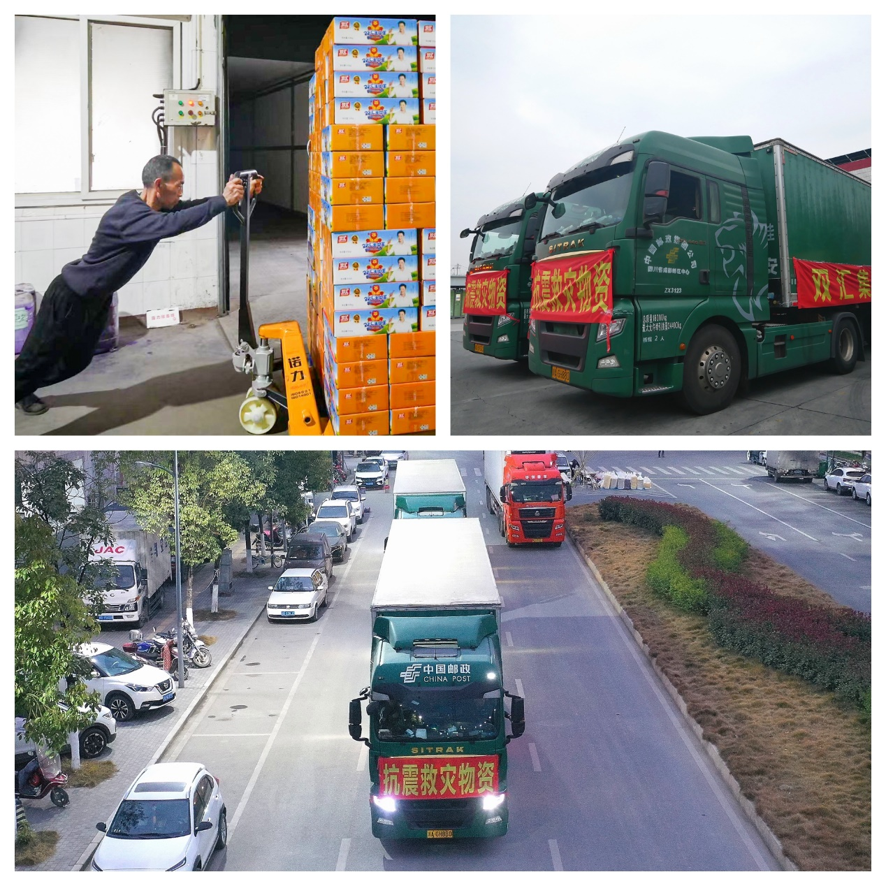 1月12日,雙匯集團(tuán)從四川綿陽公司調(diào)撥的1萬件火腿腸等食品通過中國(guó)郵政快遞專車發(fā)往西藏日喀則市定日縣地震災(zāi)區(qū)。