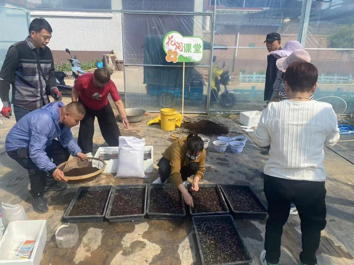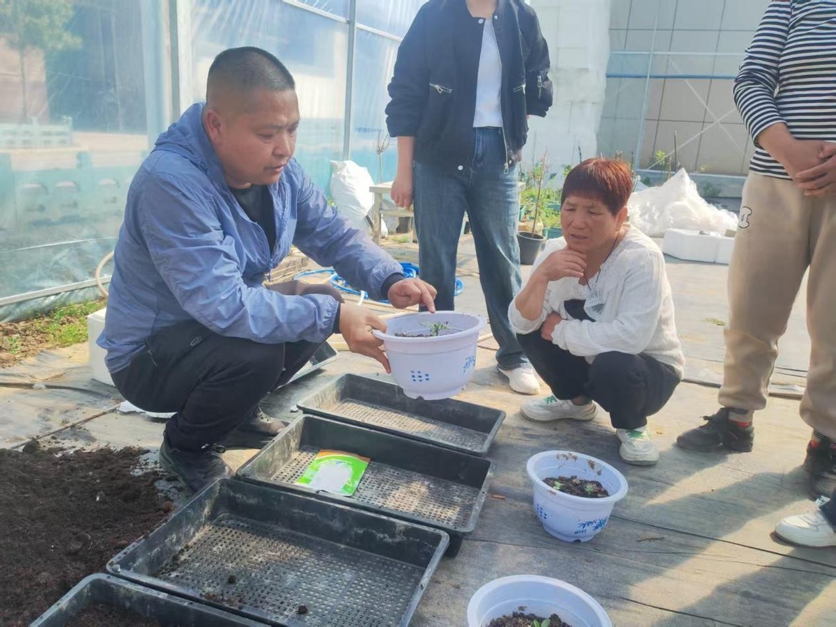 園林技術(shù)人員到村育苗大棚現(xiàn)場播種示范 楚琦偉 攝