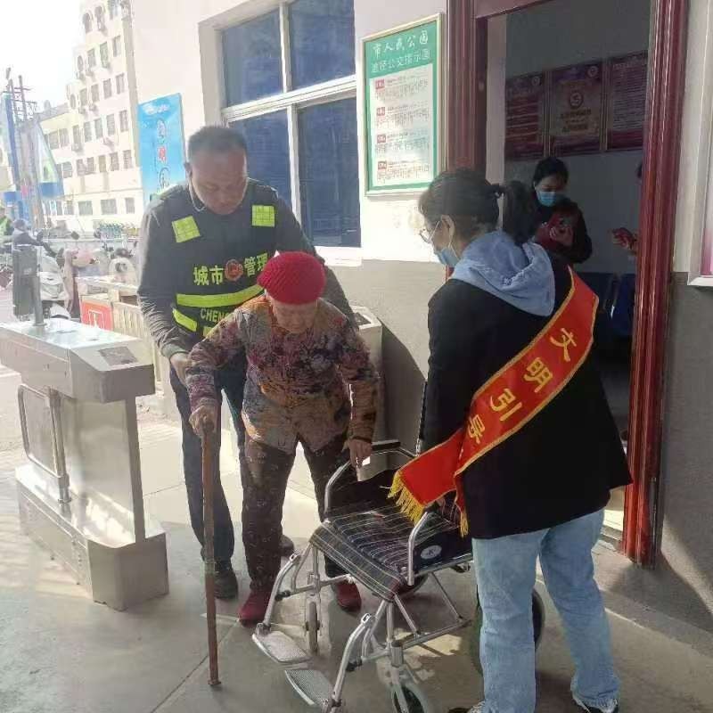 公園志愿者為入園老人提供幫助 徐亞平 攝