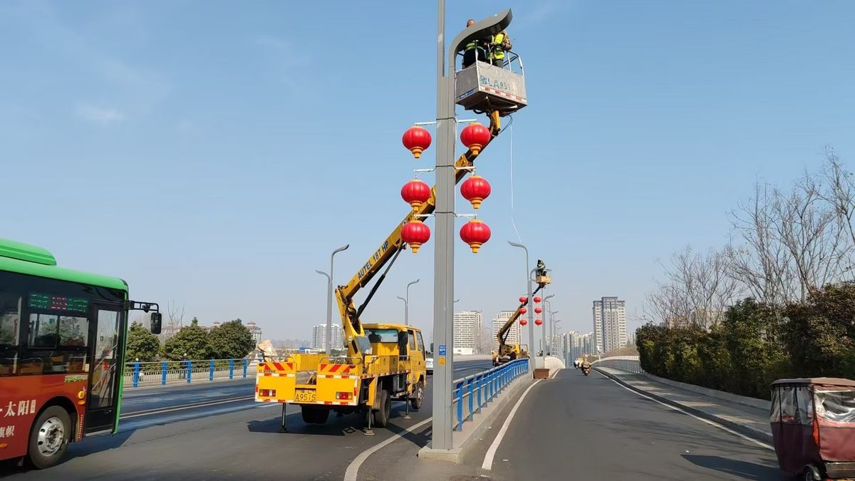 迎春燈飾安裝依托行道樹(shù)、路燈桿,以傳統(tǒng)紅燈籠為主,滿(mǎn)天星、藤球燈、星星燈等造型燈交叉懸掛點(diǎn)綴裝飾,光源以紅色、橙色、黃色暖色系為主,打造出溫馨祥和、紅紅火火的新年味兒。為早日完成安裝工作,該中心組織近百名人員,多班組同時(shí)在各燈飾安裝點(diǎn)位施工作業(yè),不分白天黑夜,加班加點(diǎn),緊鑼密鼓地高效推進(jìn)。