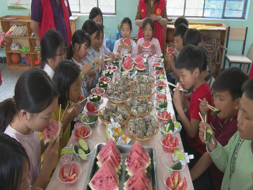 在三家店鎮(zhèn)高宗寨村兒童之家,鎮(zhèn)村干部們一早便忙活開來。他們精心準(zhǔn)備了粽子、果凍,將鎮(zhèn)內(nèi)特色農(nóng)產(chǎn)品西紅柿、黃瓜、西瓜洗凈切片,撒上白糖,制成飽含愛意的美食。活動現(xiàn)場,孩子們圍坐在一起,伴隨著稚嫩的童聲合唱《小星星》,品嘗著酸甜可口的西紅柿、清爽多汁的果蔬拼盤和軟糯香甜的粽子,歡聲笑語此起彼伏。"太好吃啦!紅紅的西紅柿、圓圓的大西瓜、脆脆的黃瓜,還有甜甜的粽子,比我以前吃過的都好吃!我太喜歡了",高宗寨小學(xué)學(xué)生宋夢凡開心地分享著感受。鎮(zhèn)村干部們一邊與孩子們品嘗美食,一邊親切詢問學(xué)習(xí)生活情況,用實(shí)際行動傳遞溫暖關(guān)懷。