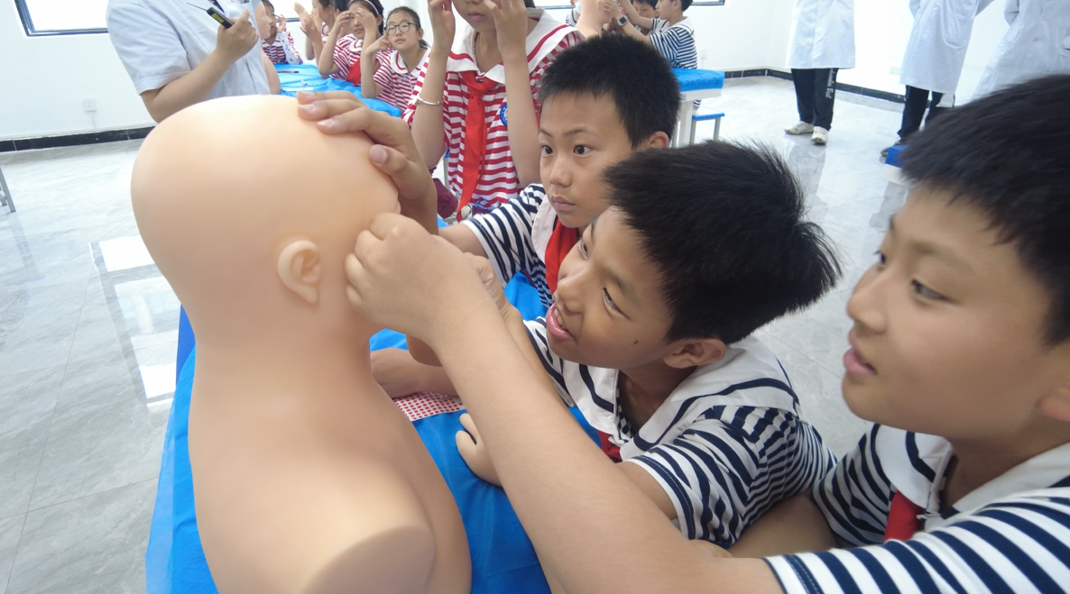 在模擬急救場(chǎng)景環(huán)節(jié),孩子們分組實(shí)踐,專注地模仿起胸外按壓、人工呼吸等急救動(dòng)作。他們神情嚴(yán)肅,動(dòng)作有模有樣,在實(shí)踐中領(lǐng)悟到了急救知識(shí)的重要性。