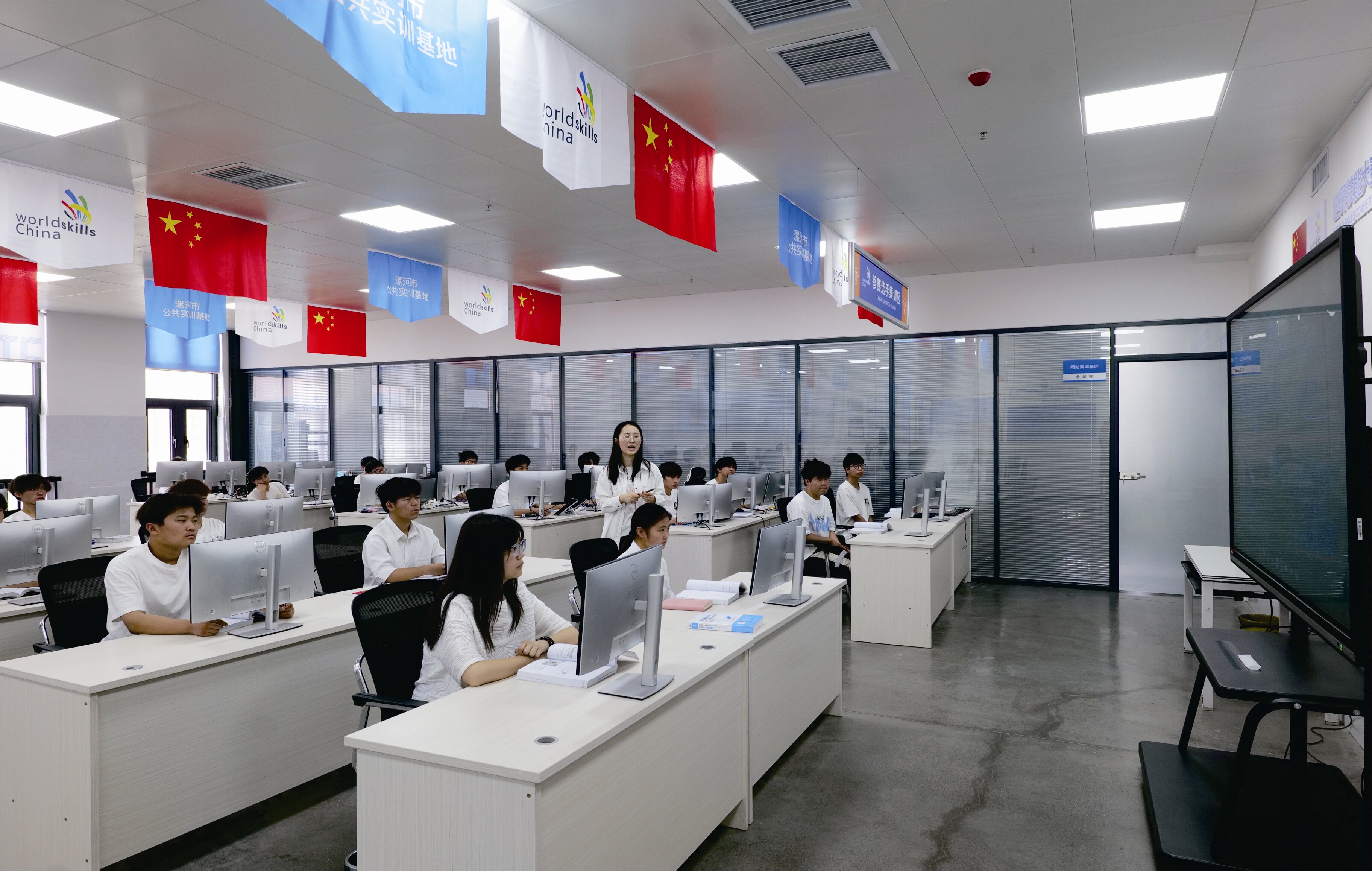 建有網(wǎng)站技術(shù)項(xiàng)目中國集訓(xùn)基地、平面設(shè)計(jì)技術(shù)項(xiàng)目河南省集訓(xùn)基地、數(shù)字媒體技術(shù)應(yīng)用實(shí)訓(xùn)室、電子商務(wù)實(shí)訓(xùn)室、電商直播間、視頻剪輯室、會(huì)計(jì)實(shí)訓(xùn)室等專業(yè)實(shí)訓(xùn)室,為教學(xué)、培訓(xùn)、鑒定提供了良好的硬件環(huán)境。