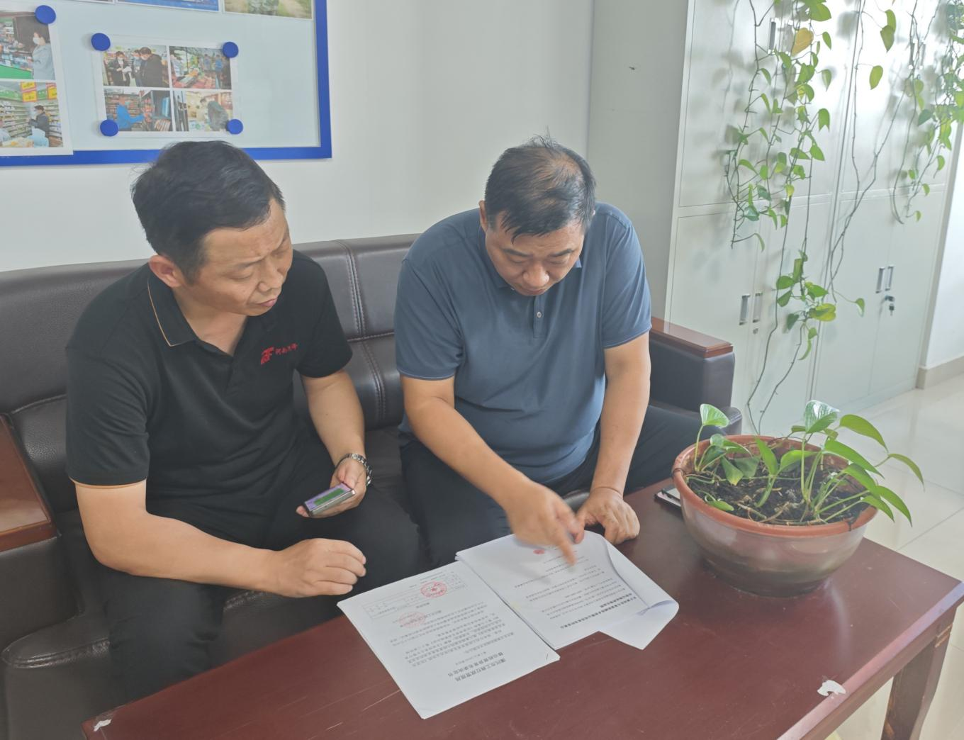 2025年7月7日下午,一名企業(yè)工作人員將一面繡著“監(jiān)管不忘服務(wù)、執(zhí)法更重幫扶”的錦旗送到漯河市市場(chǎng)監(jiān)督管理局西城區(qū)分局執(zhí)法人員手中,以表達(dá)對(duì)該局執(zhí)法人員幫扶企業(yè)的感謝之情。