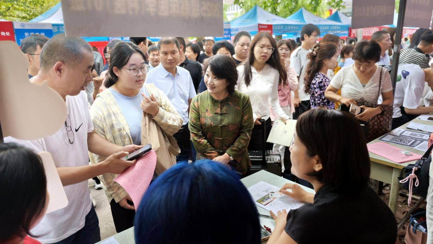 隨后,張祎捷一行走訪了源匯校區(qū)臨床醫(yī)學(xué)院、口腔醫(yī)學(xué)院、護(hù)理學(xué)院、藥學(xué)院、中醫(yī)學(xué)院、醫(yī)技學(xué)院迎新點(diǎn),詳細(xì)了解報(bào)到情況,仔細(xì)詢(xún)問(wèn)新生報(bào)到流程,注冊(cè)進(jìn)度和志愿服務(wù)安排。每到一處,她都與新生、家長(zhǎng)及工作人員深入交流。在學(xué)生宿舍區(qū),她重點(diǎn)查看了生活服務(wù)保障措施,認(rèn)真傾聽(tīng)學(xué)生初入校園的感受,鼓勵(lì)他們積極適應(yīng)新環(huán)境、融入大集體,盡快以飽滿的狀態(tài)投入大學(xué)生活,并感謝家長(zhǎng)對(duì)學(xué)校的信任與托付。此外,張祎捷一行還前往校區(qū)食堂、超市、志愿服務(wù)點(diǎn),檢查餐飲衛(wèi)生、商品供應(yīng)、志愿服務(wù)等情況,確保新生在校生活需求得到全方位保障。