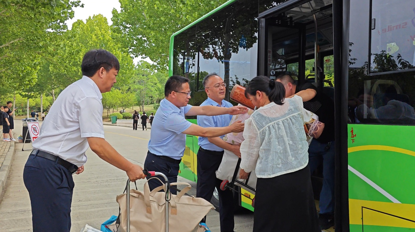 校黨委副書(shū)記邊曉峰,副校長(zhǎng)馬永超、蘭濤在接站點(diǎn)
