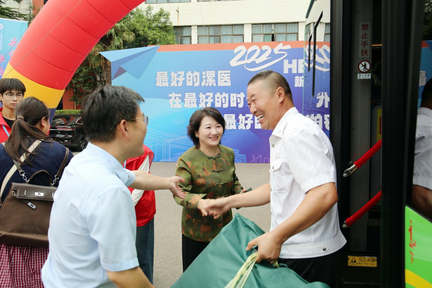 青春乘秋風(fēng),壯志啟新程。8月30日,漯河醫(yī)專(zhuān)迎新工作全面拉開(kāi)帷幕,上午8時(shí),校長(zhǎng)張祎捷、校黨委副書(shū)記邊曉峰分別帶領(lǐng)校領(lǐng)導(dǎo)班子深入源匯校區(qū)、召陵校區(qū)迎新現(xiàn)場(chǎng),迎接第一輛駛?cè)胄@的新生班車(chē),親切看望2025級(jí)新生及家長(zhǎng),并慰問(wèn)一線工作人員和志愿者。