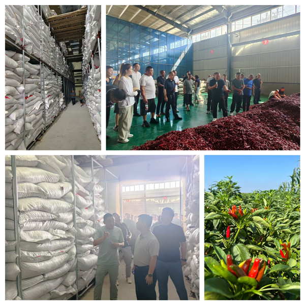 第一站實(shí)地參觀“子彈頭”、“三櫻椒”品種辣椒的生長(zhǎng)情況,學(xué)習(xí)“麥椒套種”種植技巧,詢問專家種植模式、病蟲害防治和畝產(chǎn)情況。王崗鎮(zhèn)技術(shù)人員毫無保留地分享了田間管理的關(guān)鍵細(xì)節(jié)與多年積累的實(shí)用經(jīng)驗(yàn),通過細(xì)致觀摩和現(xiàn)場(chǎng)講解,系統(tǒng)了解了這一高效種植模式的核心環(huán)節(jié)——從精準(zhǔn)選種、科學(xué)播種、病蟲防治到高效收獲、專業(yè)存儲(chǔ)及暢通銷售的全鏈條操作流程。第二站實(shí)地參觀了王崗鎮(zhèn)辣椒儲(chǔ)存專用冷庫(kù),通過查看冷庫(kù)建設(shè)分區(qū)和分揀情況,詳細(xì)了解辣椒打包存儲(chǔ)技巧和市場(chǎng)托管銷售等關(guān)鍵環(huán)節(jié),為種植大戶安心發(fā)展種植注入“強(qiáng)心劑”。