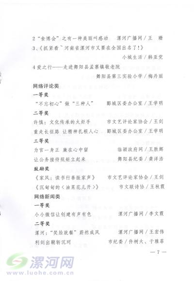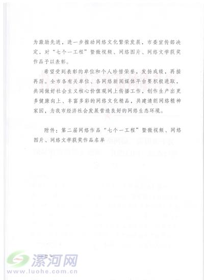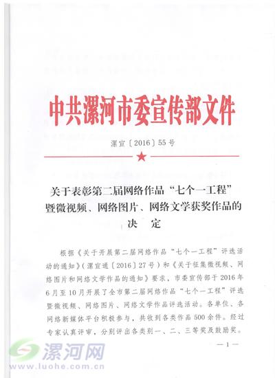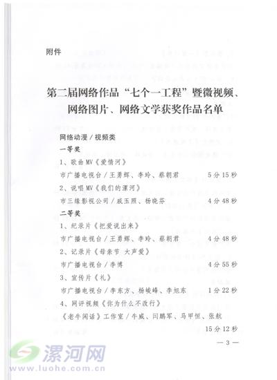 關(guān)于表彰第二屆網(wǎng)絡(luò)作品“七個(gè)一工程”暨微視頻、網(wǎng)絡(luò)圖片、網(wǎng)絡(luò)文學(xué)獲獎(jiǎng)作品的決定