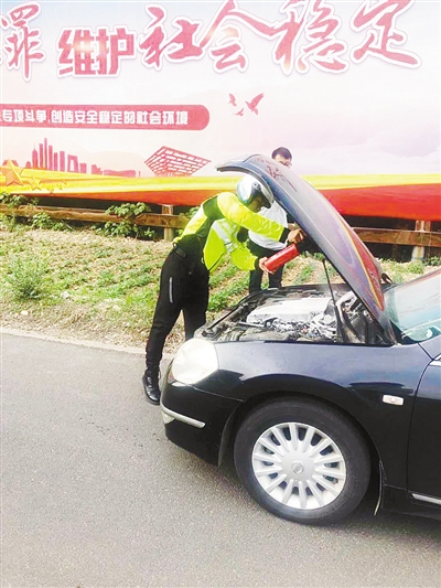 “看到他的車著了火,我就帶著摩托車上的滅火器和同事陳凱一起趕了過去。將火撲滅后,又把電瓶線拆掉,防止危險發(fā)生。”市交警支隊秩序管理大隊騎警中隊騎警陳彬說,事發(fā)時,他和同事陳凱正在附近執(zhí)行任務(wù)。