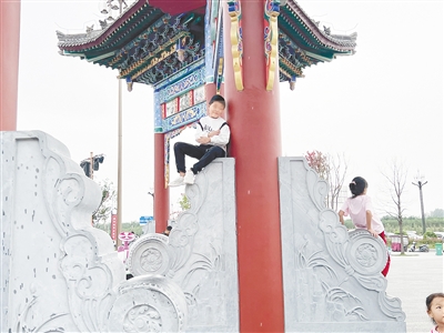 10月5日,漯灣古鎮(zhèn)內(nèi)。由于家長監(jiān)管的缺失,有小朋友攀爬到景區(qū)的建筑上,既不文明又存在安全隱患。