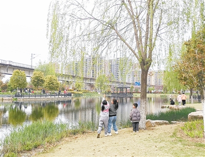 4月5日,在龍湖公園,幾個(gè)孩子在折柳條,與周?chē)谰案窀癫蝗搿?/div>