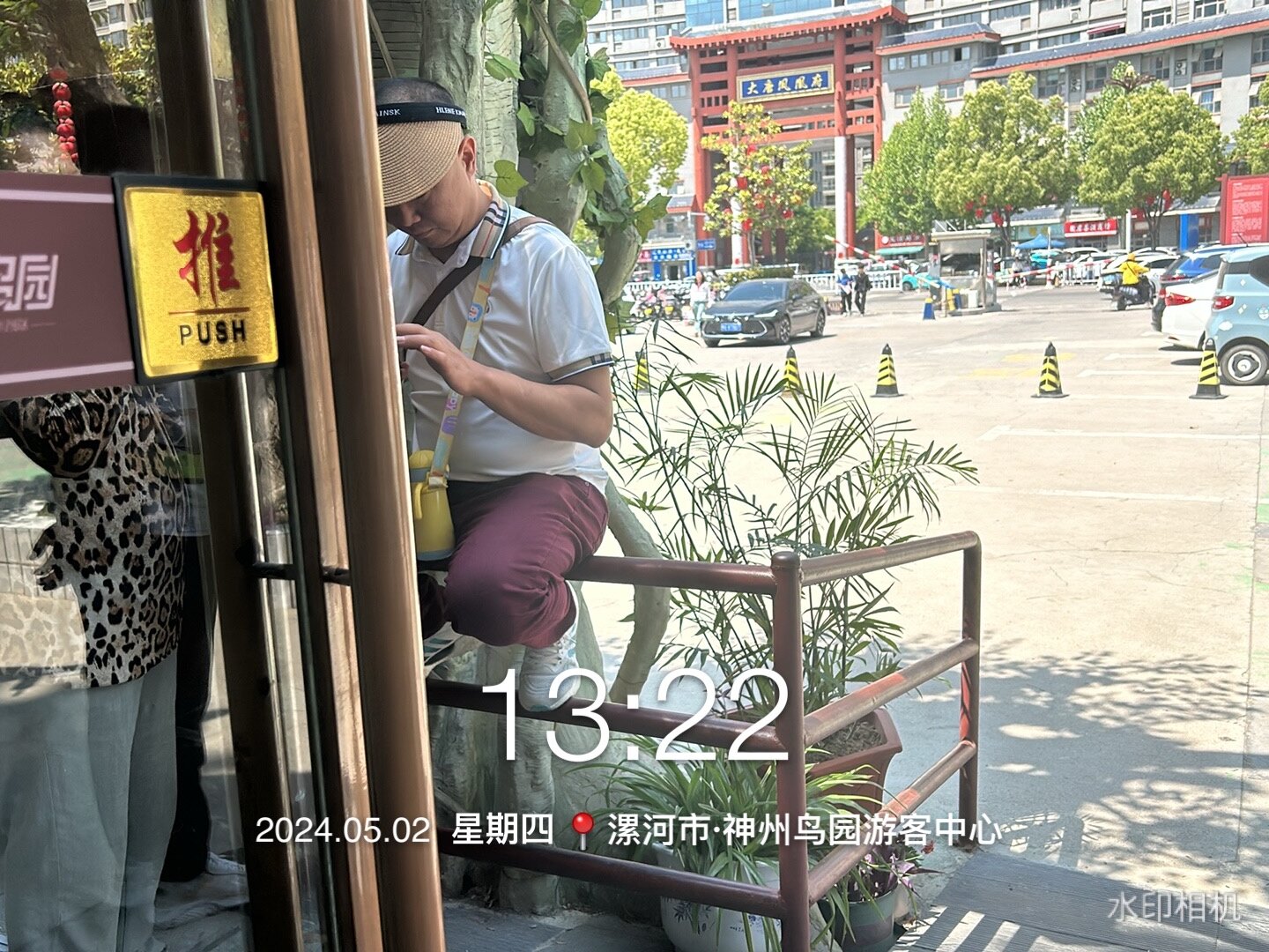 五一期間,神州鳥園,這位男士坐欄桿上休息不文明