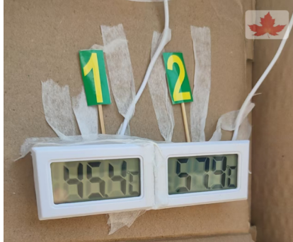 夏浩桐同學告訴記者:“去年秋天,我們觀賞紅楓葉時,偶然發(fā)現(xiàn)路兩側的五角楓樹干出現(xiàn)了蛻皮壞死現(xiàn)象。寒假期間,我們又對整條路的五角楓進行了全面觀察和統(tǒng)計,發(fā)現(xiàn)壞死率竟然超過了65%。于是,我們就這個現(xiàn)象與學校張真老師進行了討論。張老師非常支持,很快便成立了由她和我們四位學生組成的‘五角楓實驗小組’。”“我們小組多次實地調查、現(xiàn)場測試后發(fā)現(xiàn),在夏季太陽直射下,五角楓樹皮西側和南側的溫度差異巨大。比如現(xiàn)在下午3點,我們測得南側(1號線)電子測溫計顯示45.4℃,而西側(2號線)測溫計則顯示高達57.9℃,兩側溫差達到了12.5℃。”夏浩桐繼續(xù)說道,“我們小組經(jīng)過多次測試、記錄數(shù)據(jù),并查閱了大量資料,還借助了‘豆包’等AI工具進行分析,最終發(fā)現(xiàn)了一些資料提到了‘日灼病’,即因太陽輻射溫度過高而導致的植物曬傷。我們認為,這里的五角楓很可能就是患上了日灼病。”