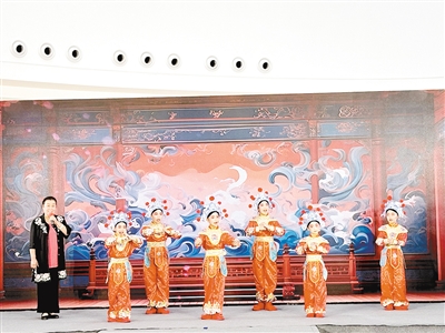 與孔淑瑩合唱的是郾城區(qū)龍湖學(xué)校非遺社團(tuán)的孩子們,從今年4月份開始排練。8歲的表演者張議文說:“我很喜歡唱戲,能在這里為大家表演特別開心。”