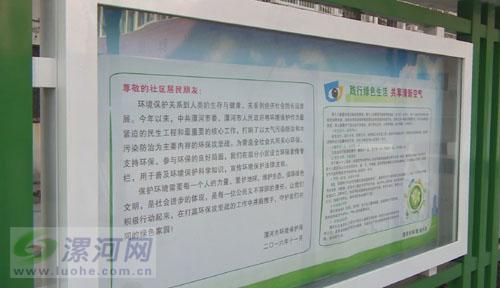 據(jù)了解,今年8月份以來,市環(huán)保局就策劃開展了“環(huán)保進萬家”社區(qū)宣傳活動。市環(huán)保局在郾城區(qū)、源匯區(qū)、召陵區(qū)、經(jīng)濟技術(shù)開發(fā)區(qū)、城鄉(xiāng)一體化示范區(qū)和西城區(qū)各選擇2個居民小區(qū),組織開展社區(qū)環(huán)保宣傳。在選定的小區(qū)內(nèi)設(shè)置固定環(huán)保宣傳欄,定期更換內(nèi)容,開展環(huán)??破罩R宣傳、生態(tài)文明宣傳。在小區(qū)內(nèi)擺放宣傳版面,向居民宣傳展示全市污染防治工作進展、環(huán)保法律法規(guī)、綠色環(huán)保理念及日常環(huán)保小知識。