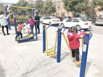 “小區(qū)里孩子太多了,天氣好的時(shí)候,經(jīng)??吹剿麄儊硗?。”在市區(qū)人民路一小區(qū)里,正在帶孩子玩的王老伯告訴記者,小區(qū)里的健身器材旁,最常見的就是老人和孩子,老年人喜歡健身,會(huì)上去練一練,孩子也習(xí)慣上去玩,健身器材旁邊就像是個(gè)小型游樂場。