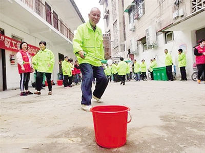 運(yùn)乒乓球比賽,十分有趣,每名參賽選手手持垃圾夾,在規(guī)定時(shí)間內(nèi),把乒乓球一個(gè)個(gè)夾到一個(gè)紅桶里。“平時(shí)都是用垃圾夾夾垃圾,這次是夾乒乓球,更考驗(yàn)眼力勁兒和手勁,夾不好就滑落了。”參賽選手朱先生說(shuō)。