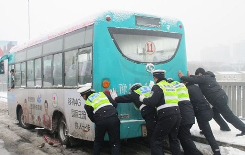 春節(jié)下雪期間 漯河交警一天內(nèi)幫忙推車(chē)70多臺(tái)