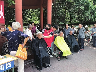 在廣場(chǎng)東南角的涼亭處,市第一中專(zhuān)的志愿者,免費(fèi)為市民理發(fā)。只見(jiàn)志愿者們麻利地為市民披上理發(fā)圍布,仔細(xì)問(wèn)清楚要求,而后認(rèn)真地理發(fā)。“阿姨,我把你的頭發(fā)稍微打薄點(diǎn),會(huì)比較涼快。”“剪得真好,我可滿(mǎn)意。謝謝你,好閨女。”市民王改坐下后,志愿者耐心地和她溝通。不一會(huì)兒,漂亮的短發(fā)讓王改高興地向志愿者道謝。