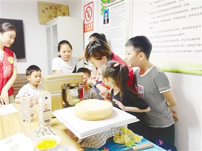 6月1日,召陵區(qū)翟莊街道燕山路社區(qū)舉辦“歡樂慶六一”活動,志愿者帶領孩子一起制作蛋糕。記者 于文博 攝
