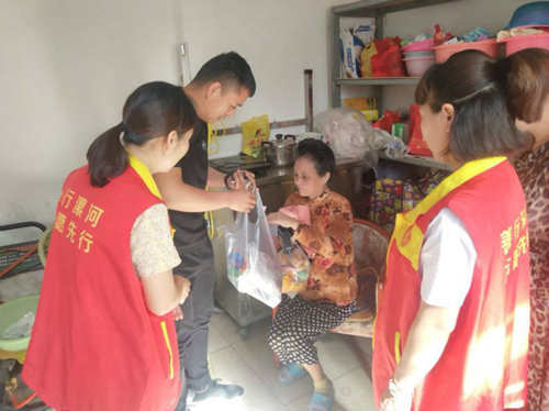 經(jīng)濟技術(shù)開發(fā)區(qū)湘江路新區(qū)湘江路社區(qū)的工作人員看望轄區(qū)生活困難的居民
