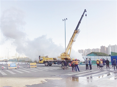 11月14日,在市區(qū)泰山路與嫩江路交叉口東南角,路邊擺放著“熱力施工 注意安全”的警示牌,在警示區(qū)域內(nèi),伴隨著機(jī)器的轟鳴聲,一根供熱管道排出濃濃的白色煙霧。這是漯河天陽供熱公司正在對具備運(yùn)行條件的熱力管道進(jìn)行運(yùn)行前的吹洗工作,以保證泰山路(嫩江路至黃河路)沿線用戶正常供暖。