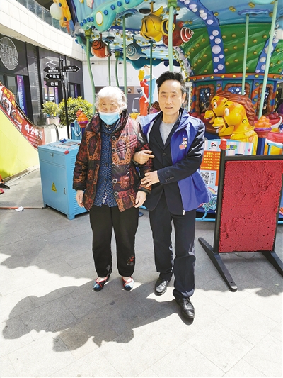 趙廣月工作的時候,他的媽媽就在廣場內(nèi)散步、曬太陽??匆娤∑娴臇|西,她也喜歡像孩子一樣問東問西。趙廣月只要閑下來,就趕緊尋找母親的身影。