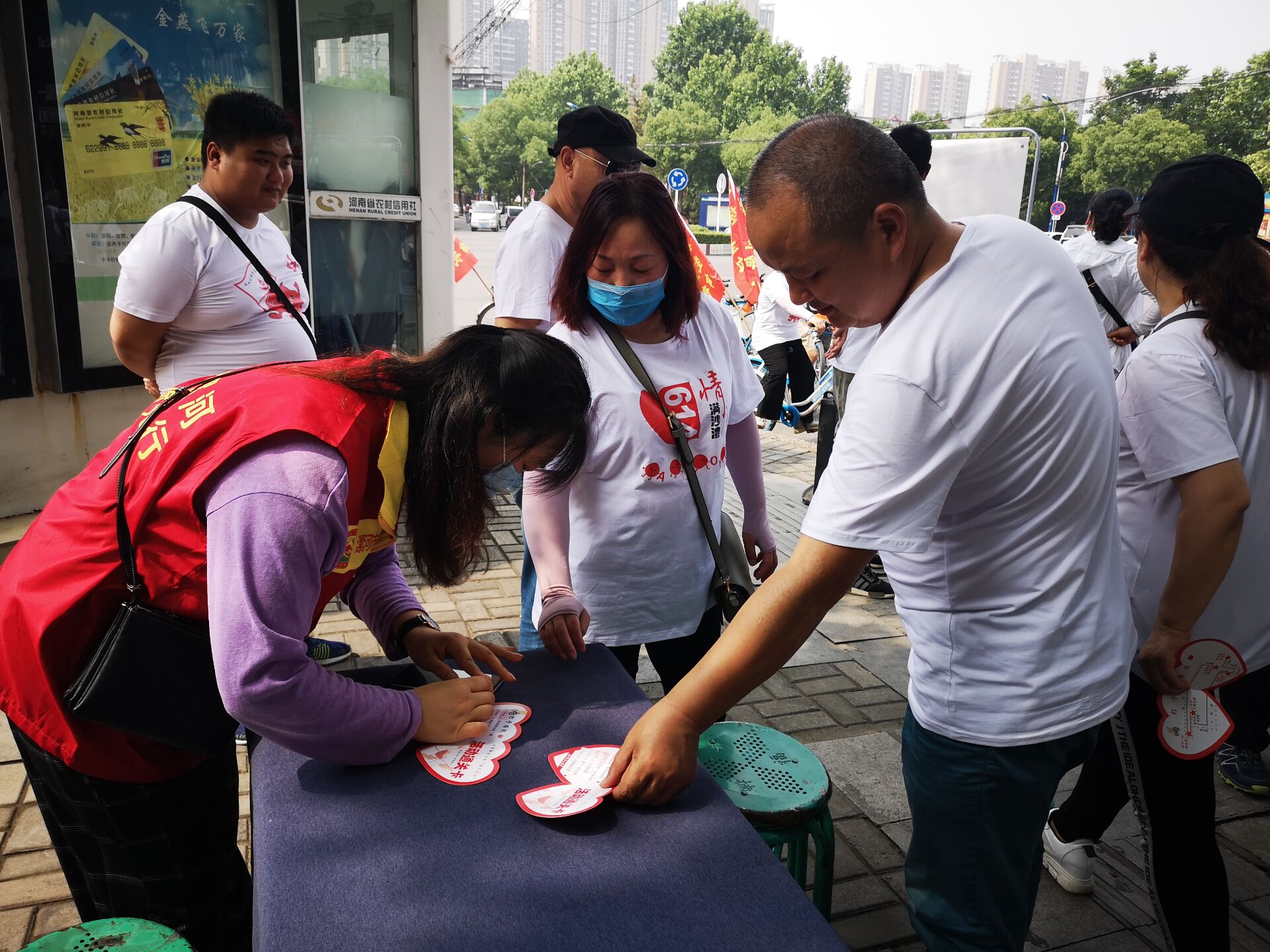 6月14日上午9時,志愿者們身穿統(tǒng)一服裝,車上綁上小紅旗,分多個小組從市區(qū)解放路006號獻血屋出發(fā),沿市內(nèi)主要干道依次到昌建廣場南獻血屋、沙北獻血屋、黃河廣場獻血屋與宣傳海報合影留念打卡簽到,最終到交通路001號獻血屋終點站完成全部騎行打卡路線。幾十米長的騎行隊伍,吸引路人、商鋪店員等矚目觀望,成為我市街頭一道靚麗的風(fēng)景線。