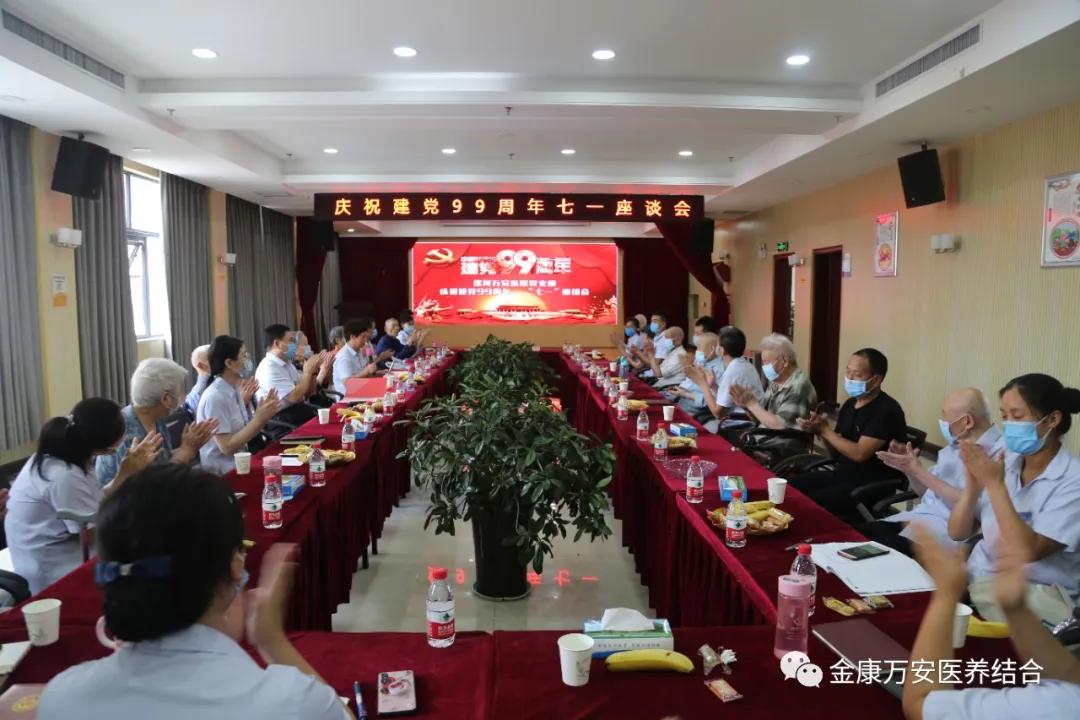 院長(zhǎng)王衛(wèi)峰代表金康萬安醫(yī)養(yǎng)健康產(chǎn)業(yè)集團(tuán)向在座的老中青三代黨員、向奮戰(zhàn)在醫(yī)療養(yǎng)老、健康管理事業(yè)上的各位同事表示節(jié)日的祝賀和親切的問候!黨員要以自身為表率,堅(jiān)持弘揚(yáng)“孝慈仁善”的企業(yè)文化,堅(jiān)持醫(yī)療扶貧和慈善事業(yè),堅(jiān)持學(xué)習(xí),不斷提升自身技能水平,為廣大群眾提供更高水平、更優(yōu)質(zhì)的服務(wù)!