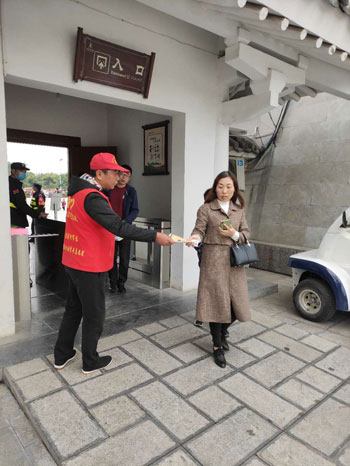 市許慎文化園景區(qū)向游客發(fā)放文明旅游指南