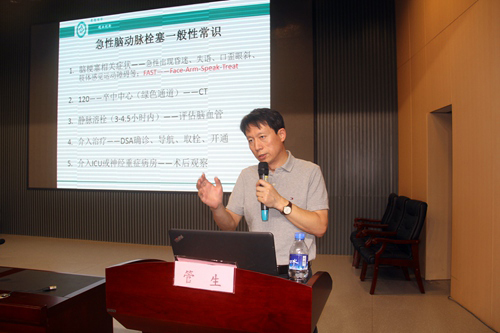 隨后,鄭州大學(xué)第一附屬醫(yī)院心血管內(nèi)科專家李凌教授熱情洋溢地講述了《急性左心衰診治進(jìn)展》,并結(jié)合自身經(jīng)驗(yàn)及最新心衰指南,深入淺出地介紹了“急性左心衰”的診療思路,詳細(xì)地論述了該病應(yīng)如何去治?如何去防。神經(jīng)介入科專家管生教授幽默風(fēng)趣地從神經(jīng)介入方向介紹了《心血管醫(yī)生應(yīng)該了解的腦血管那些事》,并提出了“心腦同診、心腦同治”的新思路,為我市心腦血管的發(fā)展及防治提供了新的借鑒與思考。最后,心血管內(nèi)科專家陶海龍教授細(xì)致、全面地介紹了“房顫的規(guī)范化治療”,他從“歷年指南房顫的治療要點(diǎn)、經(jīng)典病例及房顫的介入治療”等方面闡釋了相關(guān)問題,為大家對房顫的治療及卒中的預(yù)防提供了新的思考。