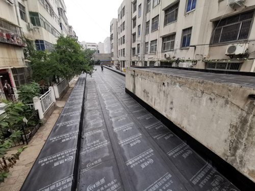 ▲市住建局分包“三無(wú)樓院”治理實(shí)景。(非機(jī)動(dòng)車庫(kù)屋頂防水)