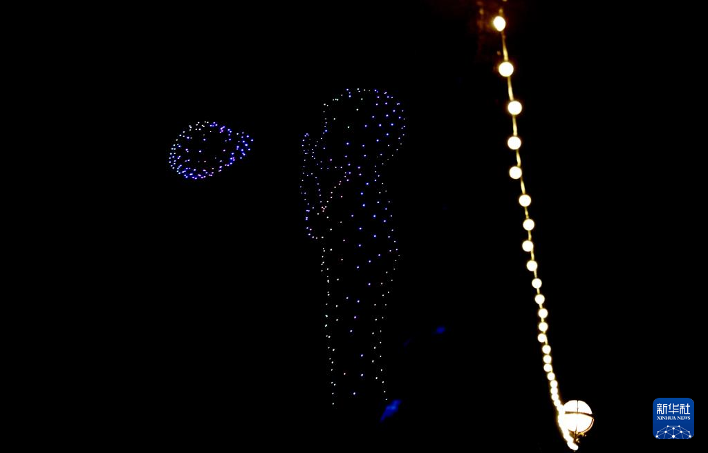 2024年1月1日凌晨,在英國(guó)倫敦舉行的新年慶祝活動(dòng)上,無(wú)人機(jī)組成的圖案出現(xiàn)在市中心上空。