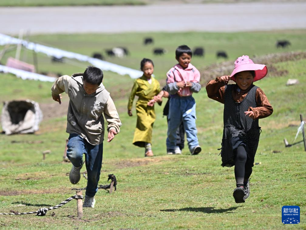 8月1日,尕瑪拉毛(右一)與小伙伴在玩耍。
