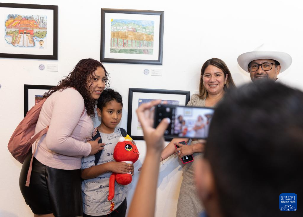 1月18日,在墨西哥首都墨西哥城舉行的第十一屆“我想象中的中國”兒童繪畫比賽活動上,參賽者和家人手拿蛇年春節(jié)玩偶在畫作前留影。